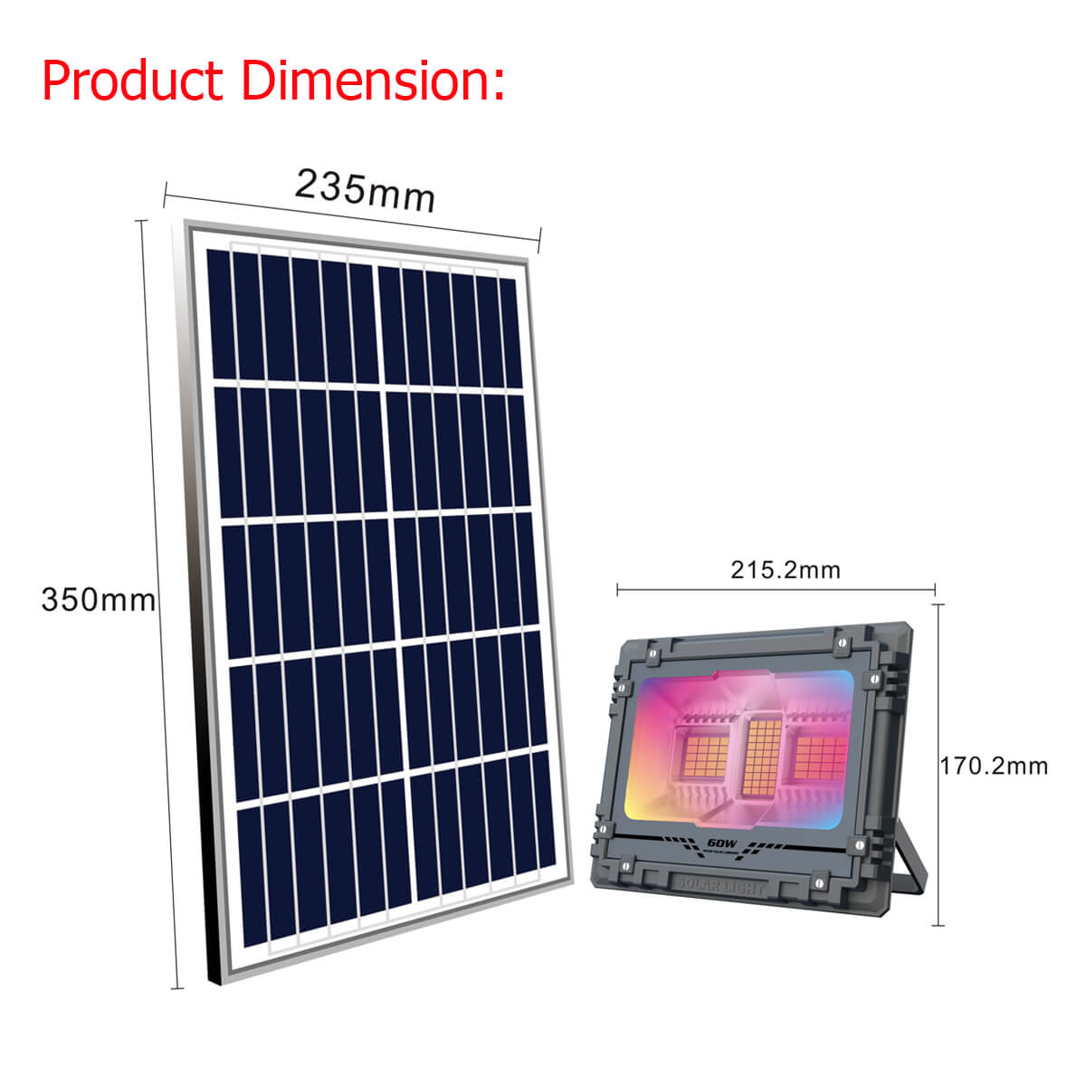 The 60W Solar Flood Light with RGB Rhythm is a versatile outdoor lighting solution that harnesses the power of the sun to illuminate your outdoor space. With a maximum output of 60 watts, this flood light provides ample brightness to light up your yard or driveway. Its RGB rhythm feature adds a unique touch, allowing you to synchronize the lighting with music or other sounds. Plus, since it’s powered by solar energy, this flood light is an eco-friendly option that can save you money on your electricity bill.